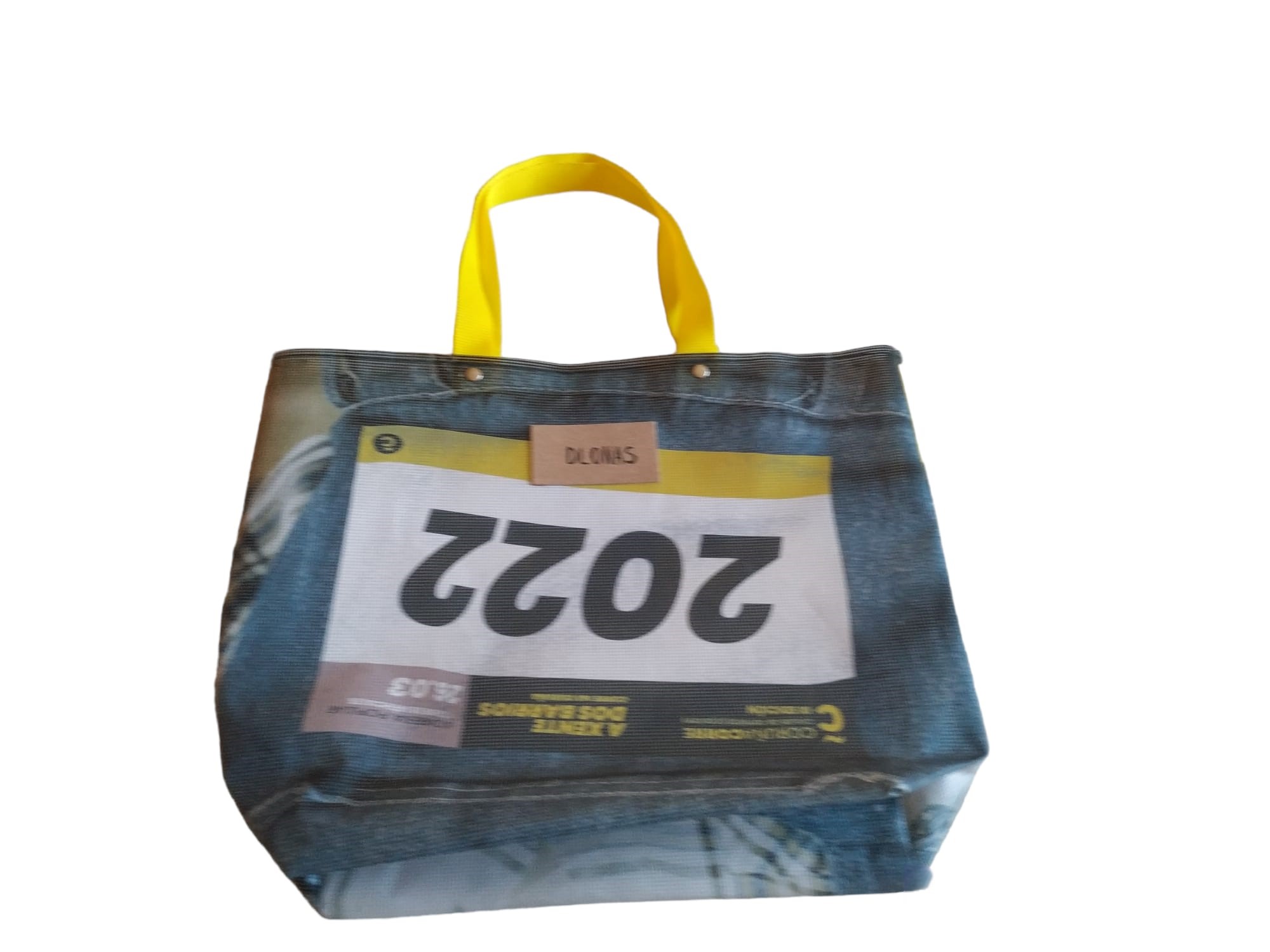Bolsa de la marca DLONAS, elaborada a partir de lonas publicitarias recicladas por personas con discapacidad intelectual de los talleres de la Fundación Adcor.