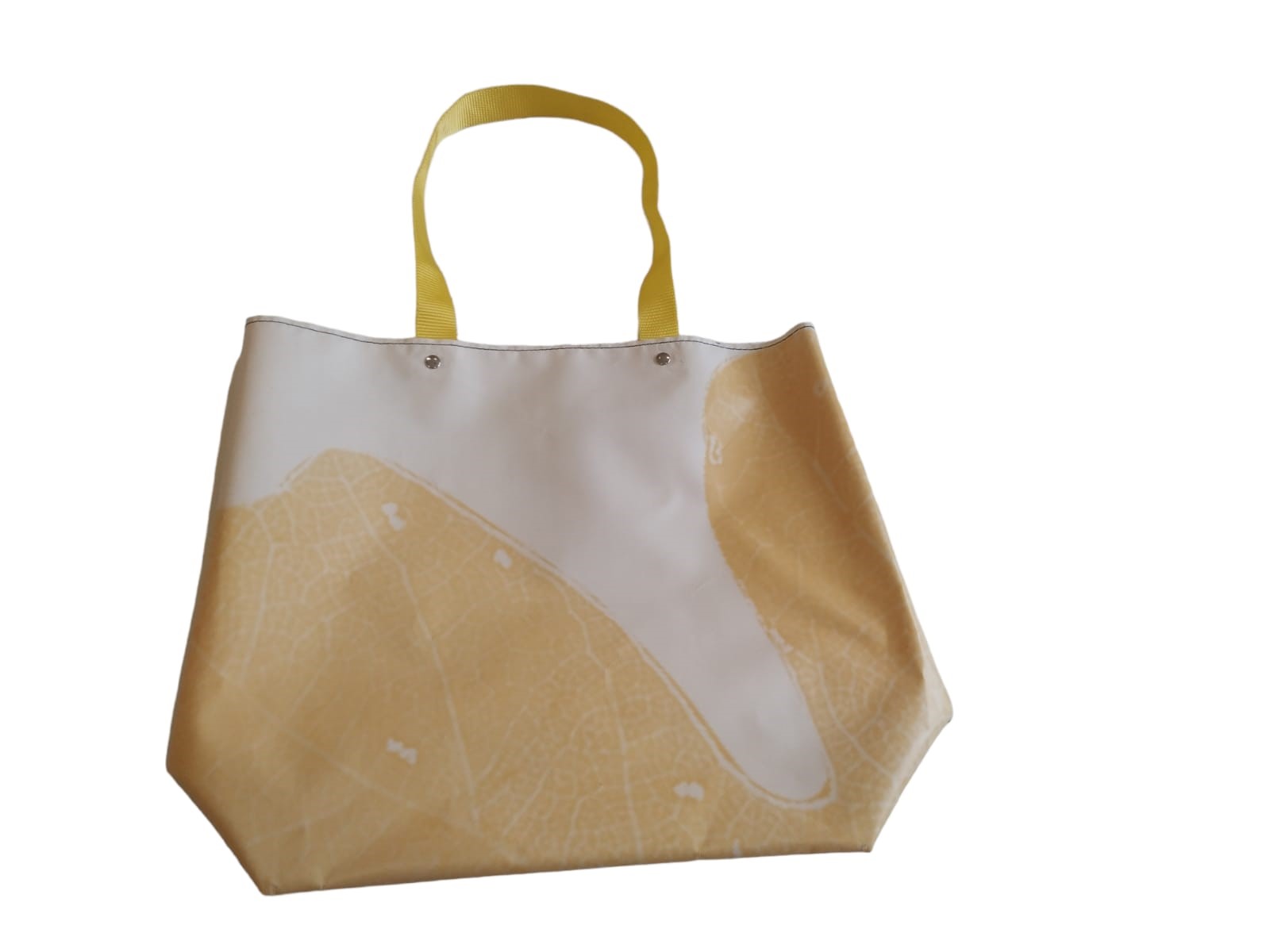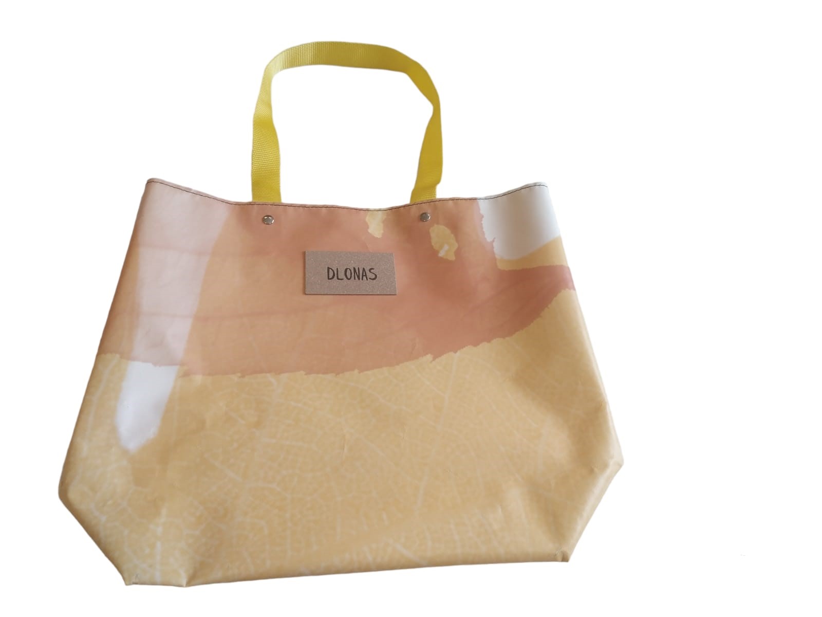 Bolsa de la marca DLONAS, elaborada a partir de lonas publicitarias recicladas por personas con discapacidad intelectual de los talleres de la Fundación Adcor.